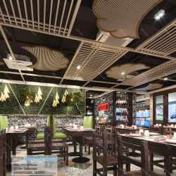 This 3D scene showcases a Tea House Cafe designed in Southeast Asian style, featuring intricate details and a cozy ambiance. The design includes elements typical of Southeast Asian decor, such as wooden furniture, traditional patterns, and lush greenery. Immerse yourself in the serene atmosphere of this virtual space, perfect for relaxation and enjoying a cup of tea. Experience the fusion of modern design with traditional influences in this captivating 3D visualization.