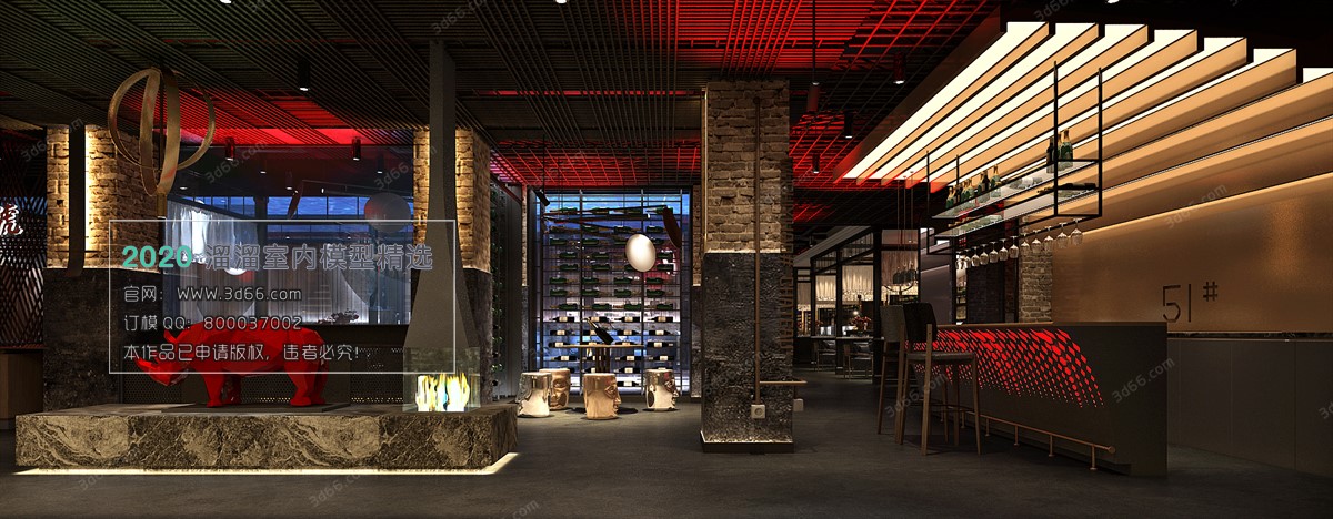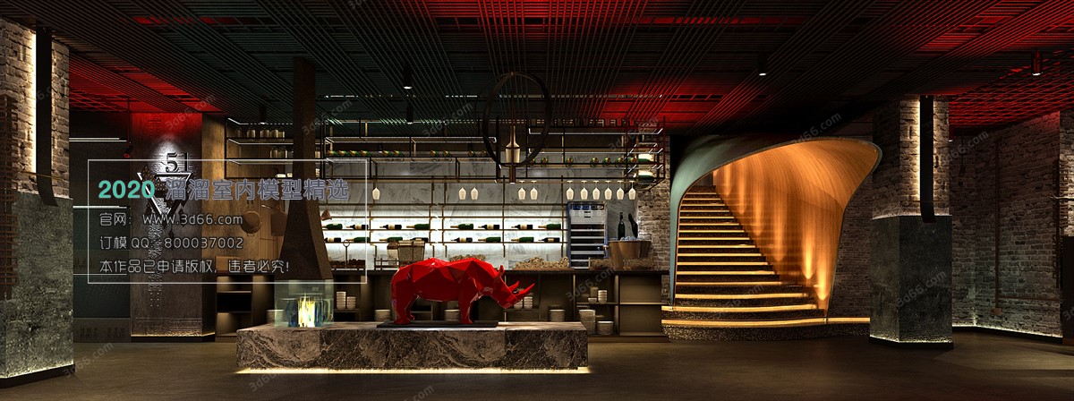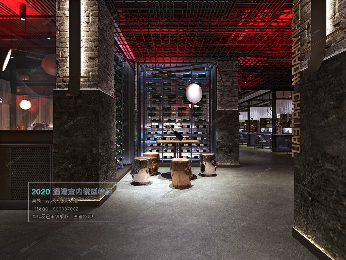 V Hotel Teahouse Industrial style Vray model 006