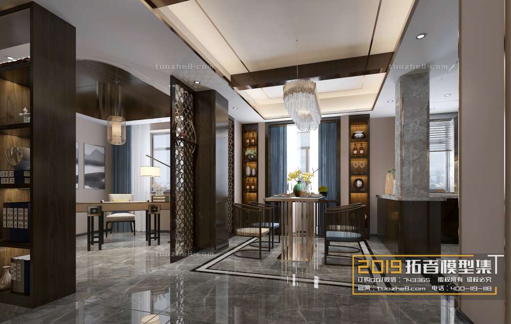 This 3D scene showcases a modern kitchen design with stylish furniture and appliances. It is perfect for interior design projects and visualizations. Explore this high-quality 3D model in our library.