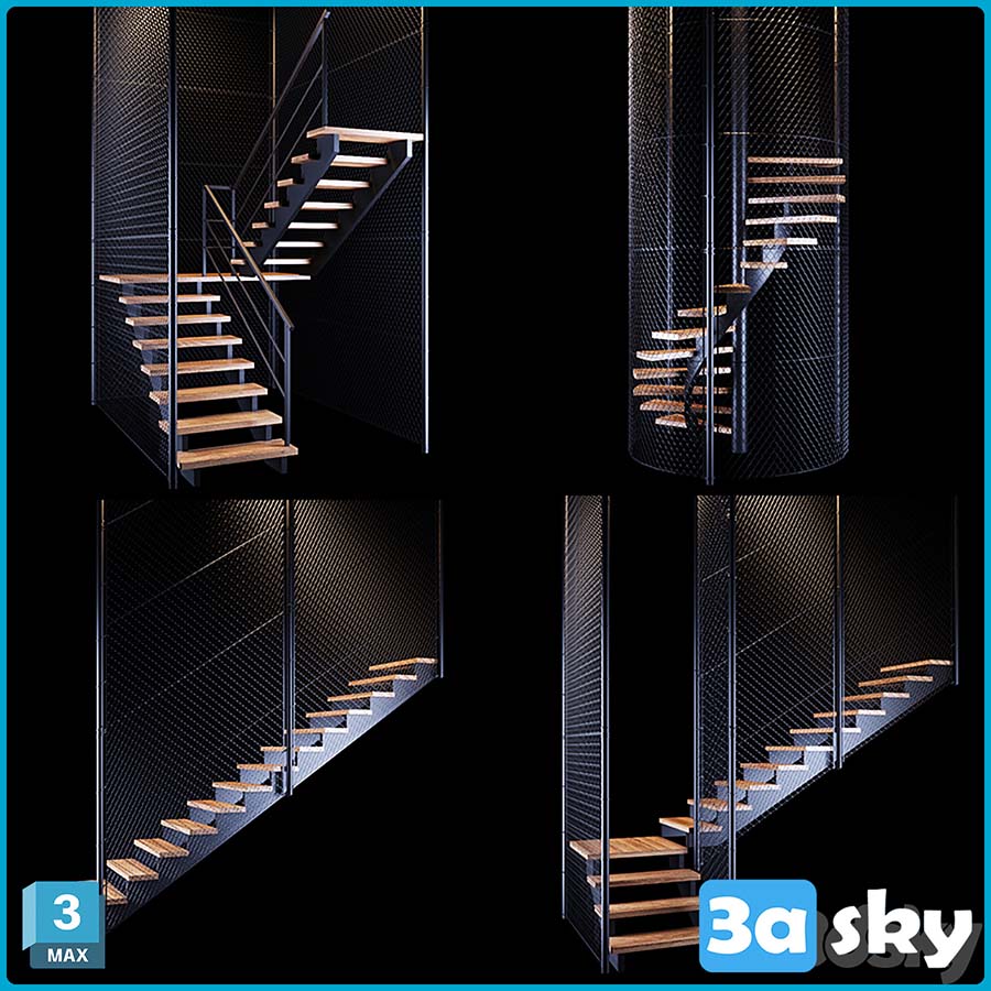 This image showcases four types of ladders in a loft setting. The design is modern and sleek, perfect for contemporary interior decoration projects. The V-Ladder design adds a unique touch to any space, combining functionality with style. Explore this 3DS MAX decoration file to incorporate these ladder designs into your own projects.