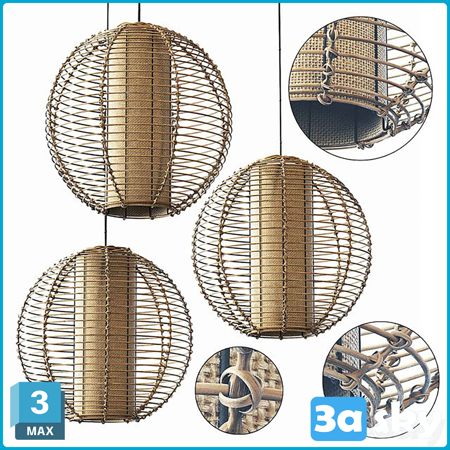 This 3D model showcases a unique V-Lamp design with intricate wicker branch rattan details. The lighting fixture is ideal for interior spaces looking to incorporate a natural and stylish element. The combination of wicker and rattan materials creates a visually appealing and modern lighting solution. Perfect for adding a touch of nature to your home or commercial space.