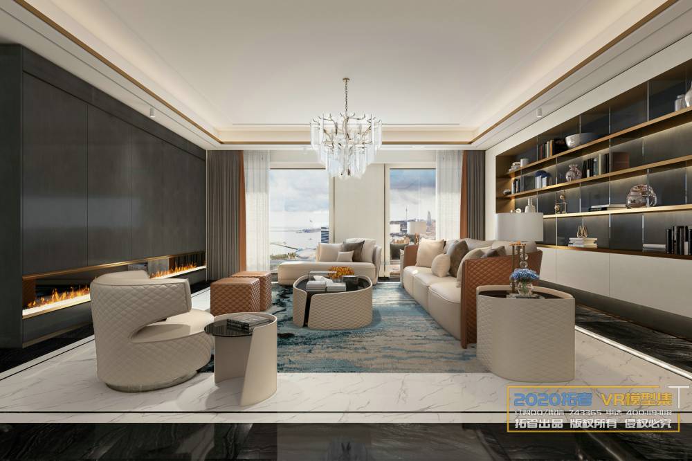 This 3D scene showcases a modern living room design with stylish furniture and decor. Perfect for interior design enthusiasts and professionals looking for inspiration for their projects.