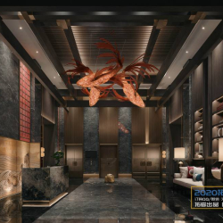 This 3D scene showcases the V Lobby 24 Preview, highlighting the intricate interior design and architecture. Explore the detailed elements of this 3D model and immerse yourself in the creative world of interior design.
