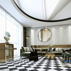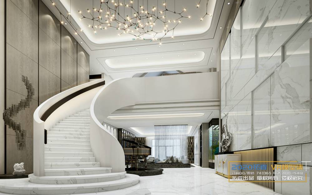This 3D scene features a modern lobby design, perfect for architectural visualization projects. The scene includes detailed interior elements and a contemporary aesthetic. Download this high-quality 3D model to enhance your architectural renderings and presentations.