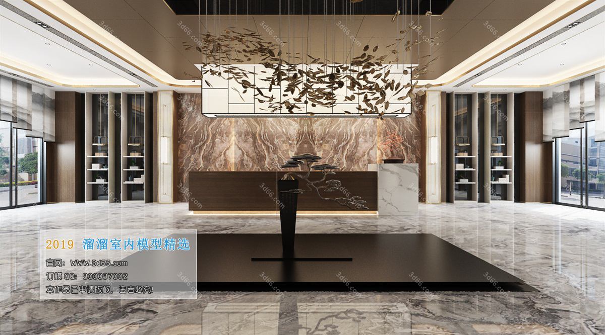 This 3D scene showcases a Chinese style front desk in a lobby setting. The design features intricate details and a blend of traditional Chinese elements with modern aesthetics. Explore this visually stunning representation of a welcoming and elegant reception area.