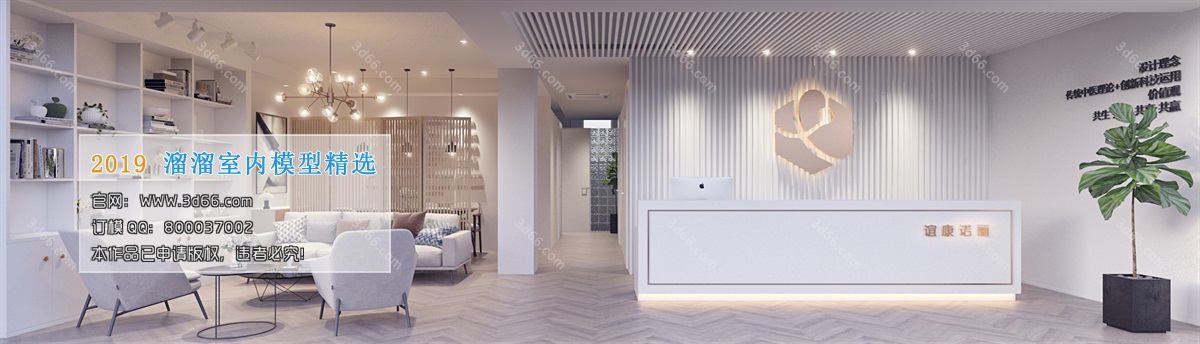 This 3D scene showcases a modern style front desk in the V lobby. It is designed with sleek lines and contemporary elements, perfect for a modern office or hotel reception area. The scene is created in 3DS MAX/3D format, providing a detailed and realistic representation of the design. Ideal for architects, interior designers, and anyone interested in modern interior spaces.