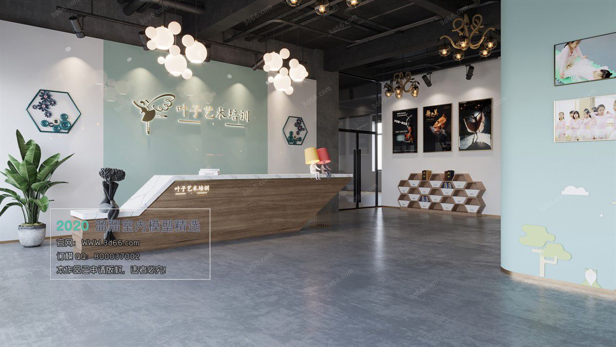 This 3D scene showcases the V Lobby Reception in a modern industrial style, featuring Corona Model 001. The design elements blend industrial aesthetics with modern functionality, creating a unique and visually appealing space. Explore the intricate details and layout of this scene to inspire your own interior design projects.