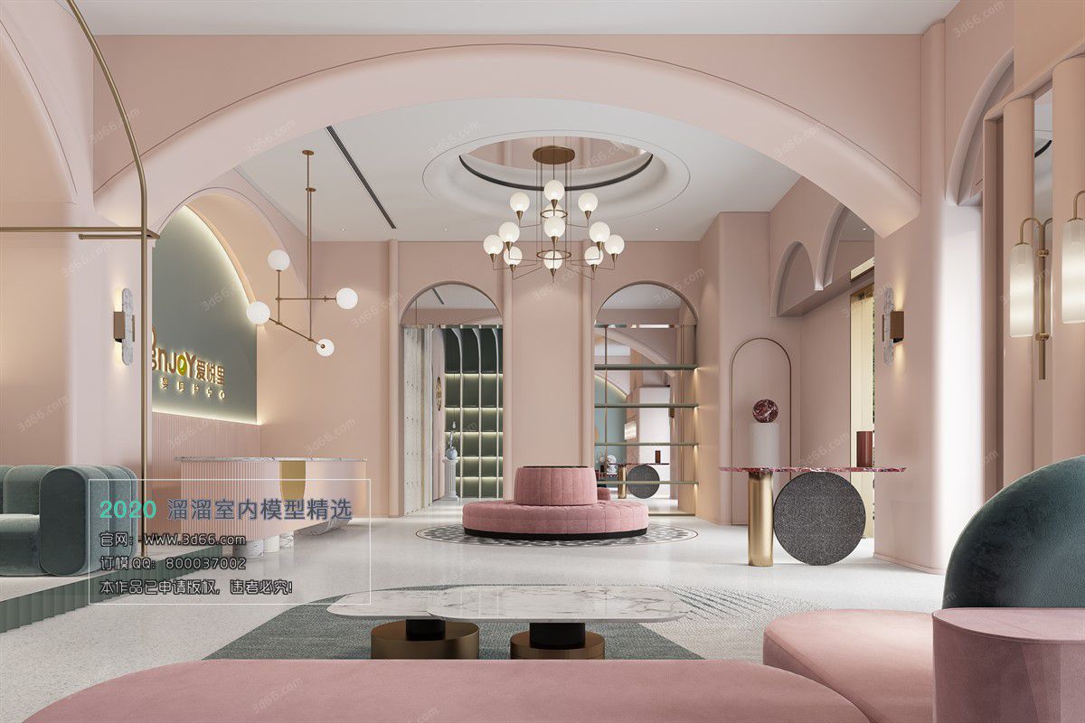 This 3D scene showcases a modern style Vray model of a lobby reception. The design features sleek lines, contemporary elements, and a sophisticated aesthetic. Explore the intricate details and layout of this interior space, perfect for architectural visualization and design inspiration.