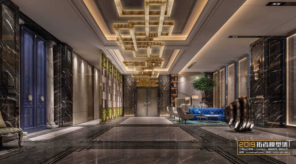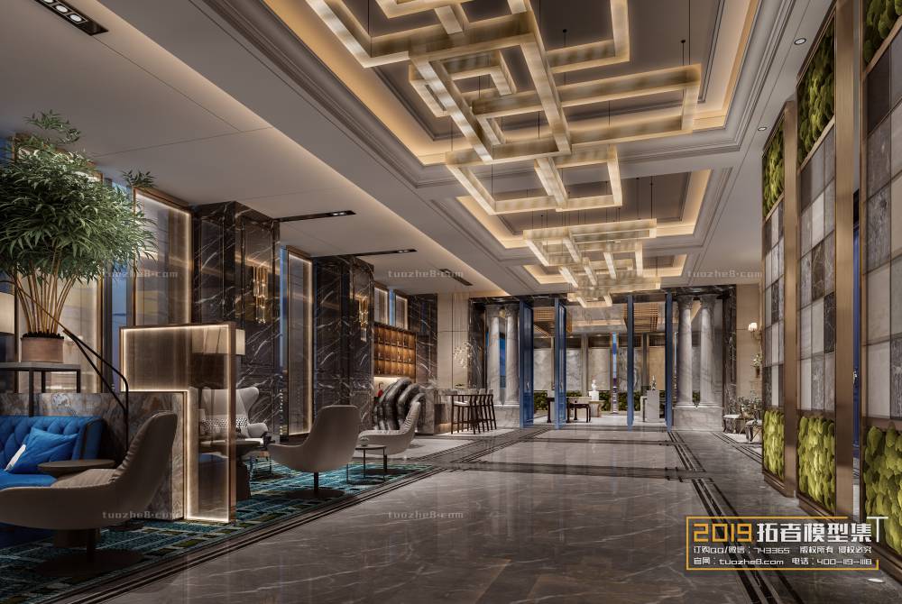 This 3D scene showcases a modern and contemporary lobby space. The design features sleek lines, elegant furniture, and a sophisticated color palette. Explore the intricate details of this 3D model and get inspired for your own interior design projects.