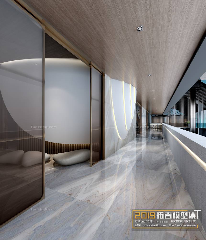 This 3D scene showcases a modern and contemporary lobby space design. The intricate details and architectural elements create a visually appealing environment. Explore the interior design of this space and appreciate the attention to detail in the layout and decor.