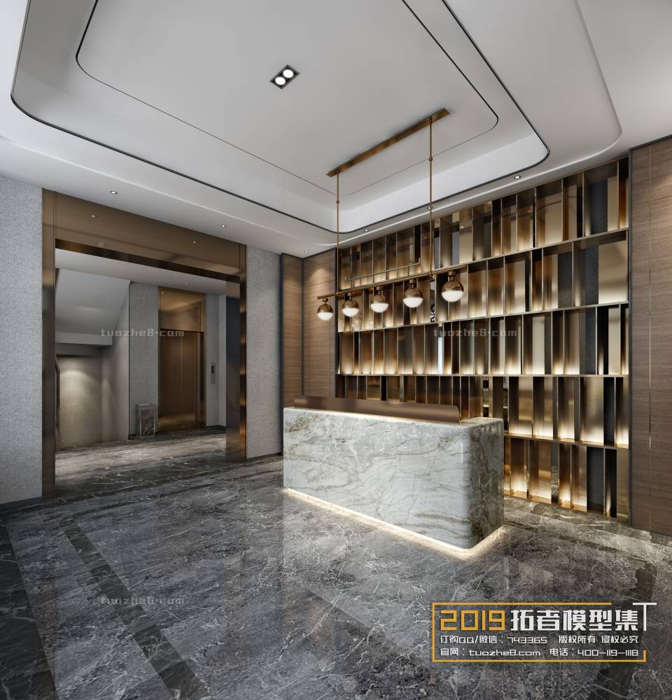This 3D scene features a beautifully designed lobby space with modern architecture and interior design elements. The space is elegantly furnished and showcases a contemporary style. Perfect for architectural visualization and interior design projects.