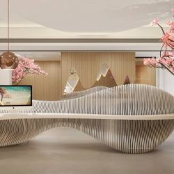 This 3D scene showcases the V Lobby Space 016, featuring a modern and stylish interior design. The space is meticulously crafted with attention to detail, creating a captivating environment. Explore the intricate architecture and design elements in this visually stunning scene.
