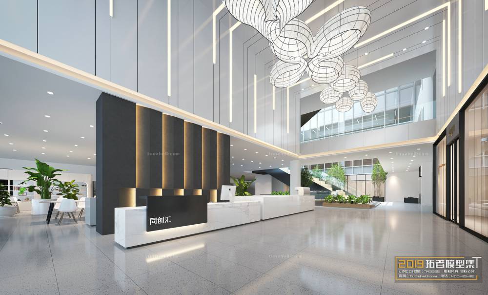 This 3D scene showcases a modern and contemporary lobby space, perfect for interior design and architecture projects. The high-quality 3D model captures the essence of a stylish and inviting space, ideal for various creative endeavors.