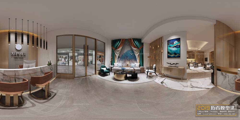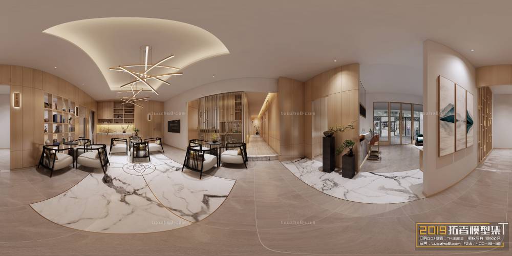 This 3D scene showcases a modern and contemporary lobby space with intricate design details. Explore the interior design and architecture of this captivating space, perfect for visualizing and incorporating into your projects.