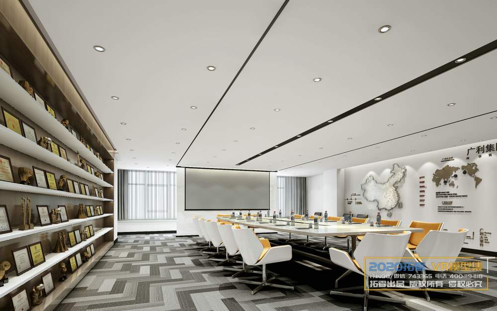 This 3D scene features a preview of a meeting room setup labeled as V Meeting 13. The design includes modern furniture and a professional ambiance suitable for business meetings. Download the 3DS MAX file to incorporate this scene into your architectural or interior design projects.