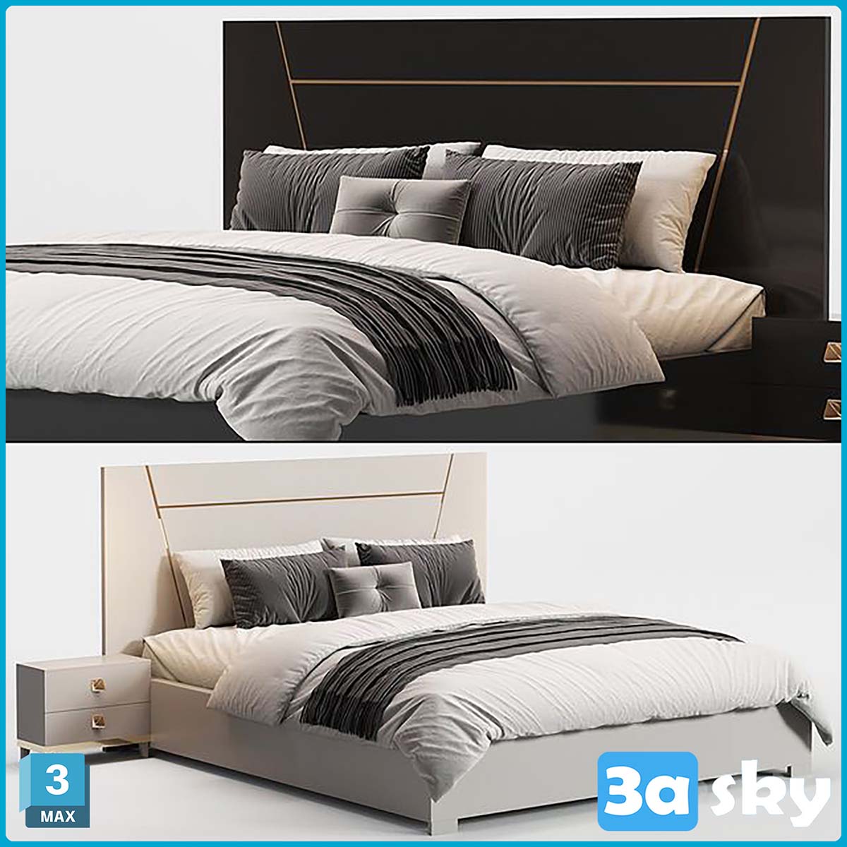 This 3D model showcases the V Noir Bed designed by Alfy. It features a sleek and modern design, perfect for contemporary interior settings. The high-quality rendering provides a detailed preview of the bed, highlighting its elegant aesthetics and craftsmanship. Explore this 3D furniture model to enhance your interior design projects.