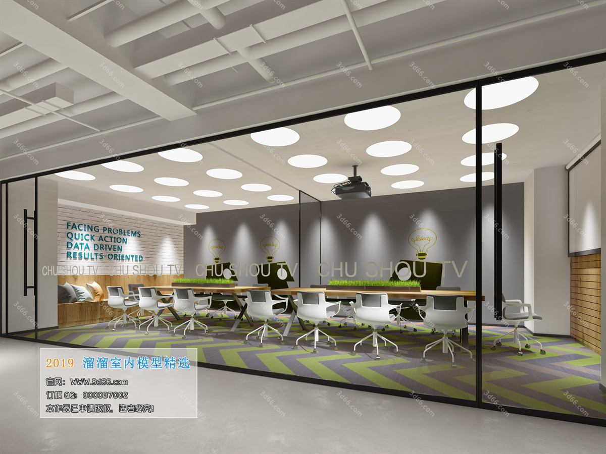 This 3D scene showcases a modern office meeting room designed in a sleek and contemporary style. The space features elegant furniture, modern lighting, and a clean color palette, creating a professional and inviting atmosphere. Ideal for architectural visualization projects or interior design inspiration.