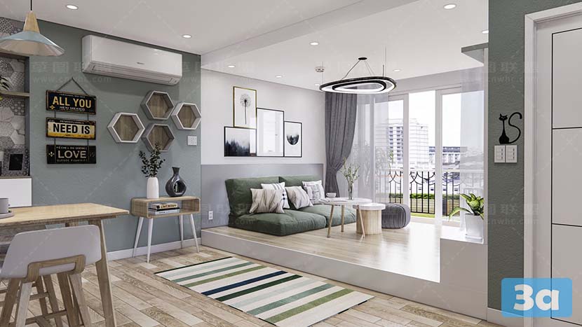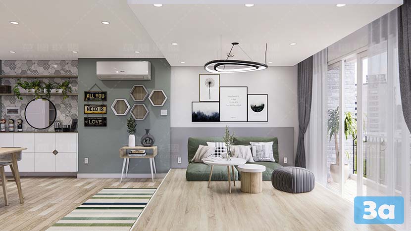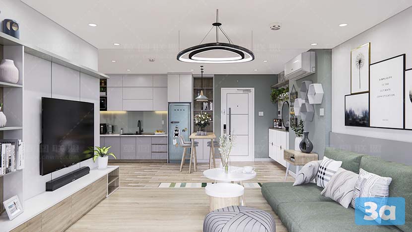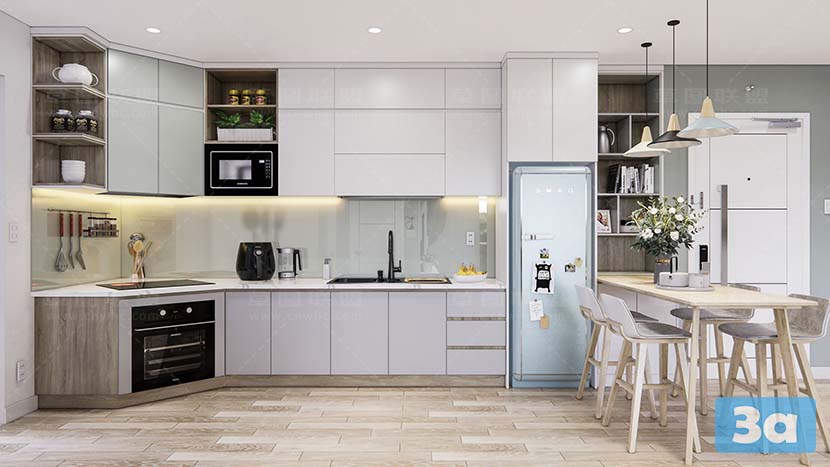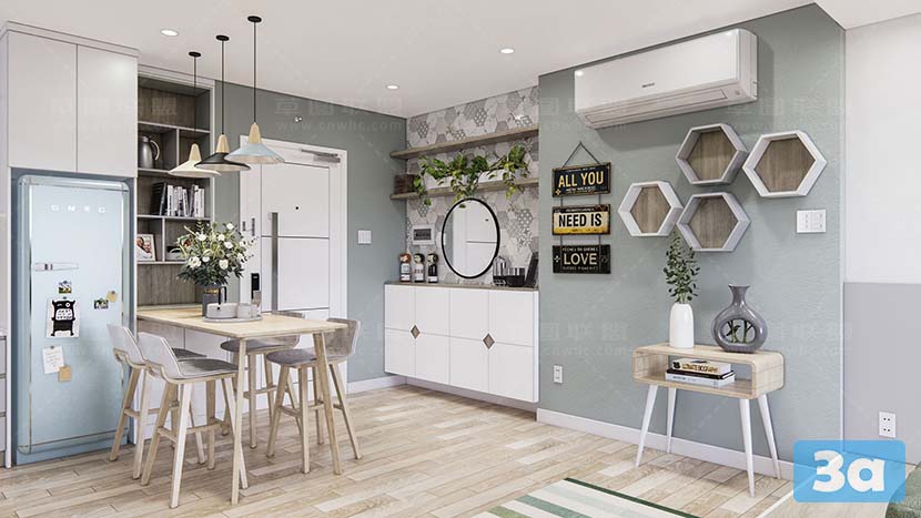 This 3D scene showcases a beautifully designed dining room rendered using V-Ray. It features elegant furniture, lighting, and decor, creating a cozy and inviting atmosphere. Perfect for interior design enthusiasts and professionals looking for inspiration and high-quality 3D models for their projects.