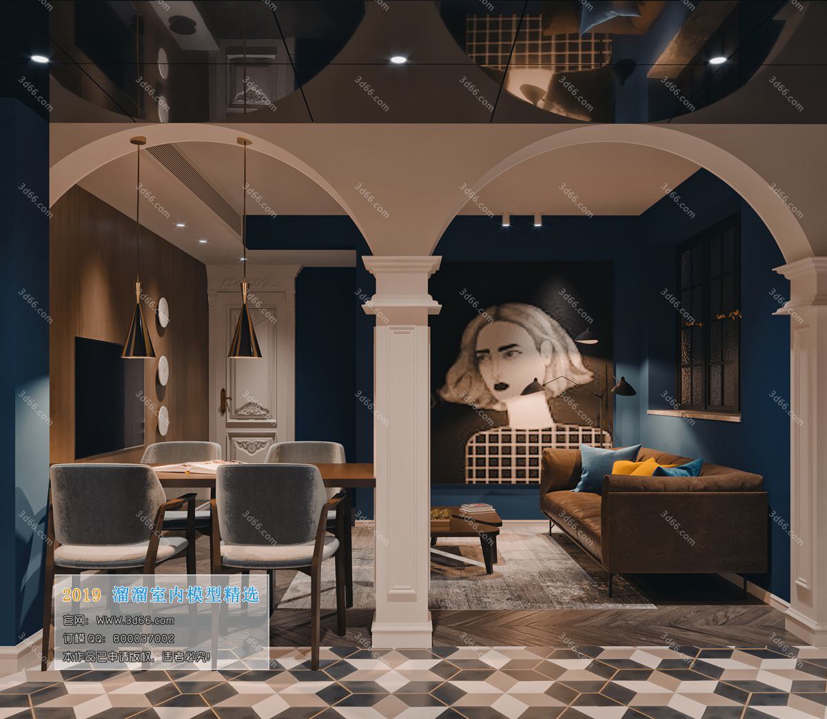 This 3D scene showcases a restaurant kitchen designed in a mix style, blending modern and traditional elements. The design features a harmonious combination of contemporary and classic elements, creating a unique and inviting space. Explore the details of this kitchen scene to inspire your own design projects.