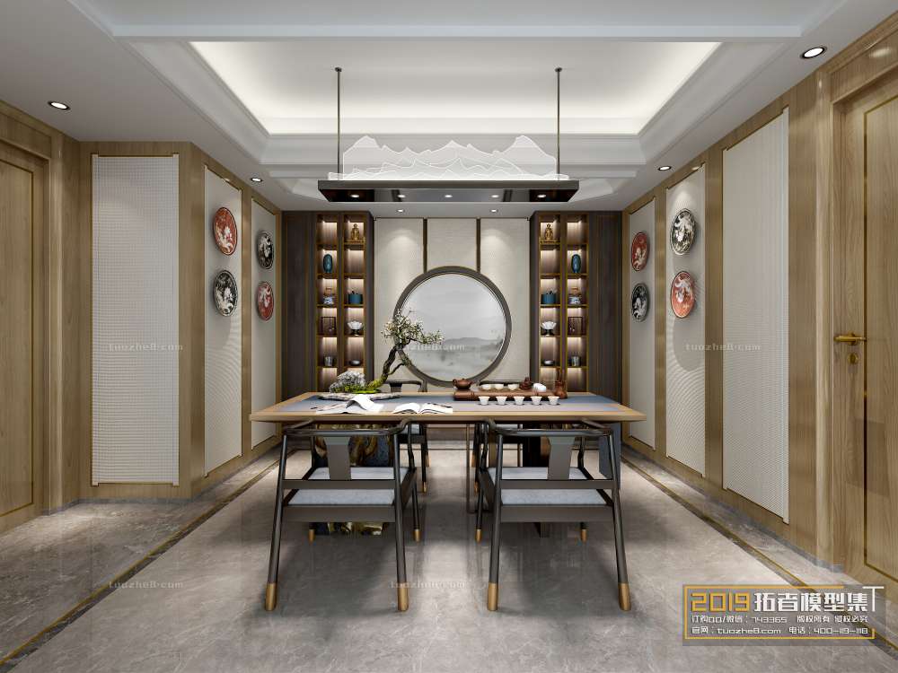 This 3D scene showcases a beautifully designed tearoom with intricate furniture and a cozy ambiance. Perfect for interior design enthusiasts and those looking for inspiration for their own tea room projects.