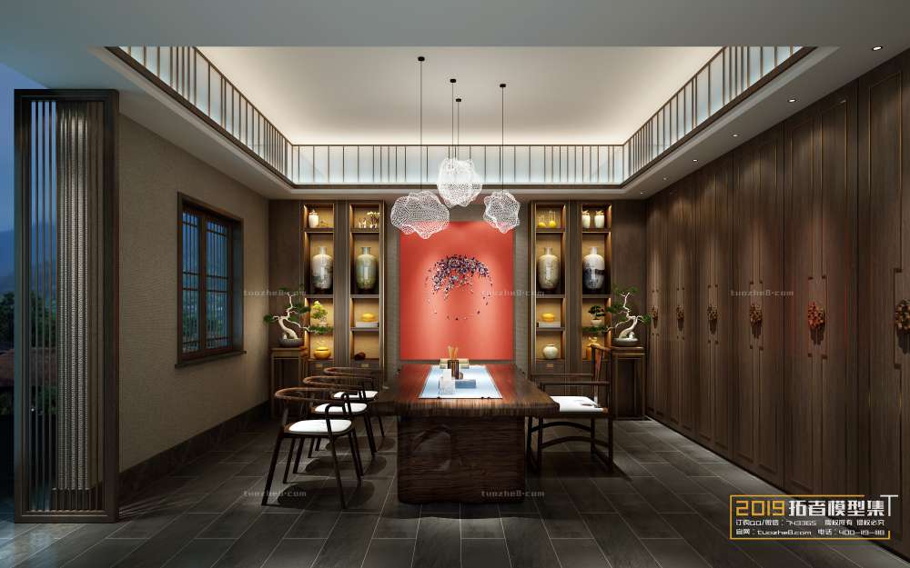 This 3D scene showcases a tearoom with exquisite interior design. The furniture and decor create a serene and elegant atmosphere, perfect for relaxation and contemplation. The attention to detail in this scene is remarkable, capturing the essence of a tranquil tearoom setting.