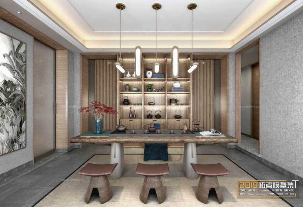 This 3D scene features a beautifully designed tearoom with intricate furniture and a cozy ambiance. Perfect for interior design enthusiasts and those looking for inspiration for their own tea room projects.