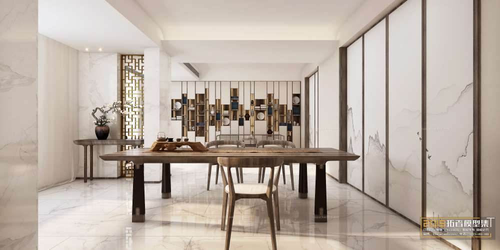 This 3D scene showcases a beautifully designed tearoom with intricate furniture and decoration. Perfect for interior design enthusiasts and architects looking for inspiration.