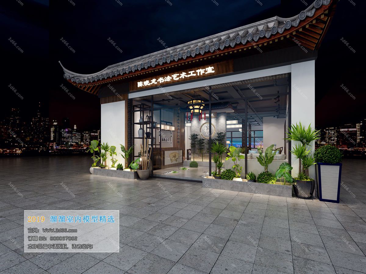 This 3D scene showcases a public Chinese style setting, featuring intricate details and design elements. The scene is created in 3DS MAX and offers a visually appealing representation of Chinese architecture and aesthetics. Perfect for architectural visualization projects or cultural-themed designs.