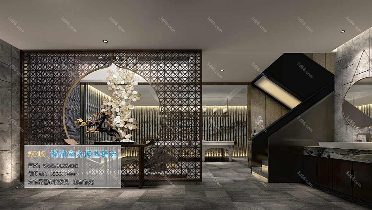 This 3D scene features a detailed and beautifully crafted Chinese architectural style. The design elements reflect traditional Chinese aesthetics with a modern touch. Perfect for architectural visualization projects and design inspiration.