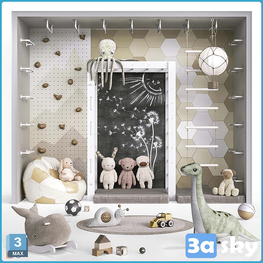 This 3D model showcases a collection of V Toys decor and furniture designed for architectural visualization projects. The file is created in 3DS MAX and is ideal for interior design and architectural rendering purposes.