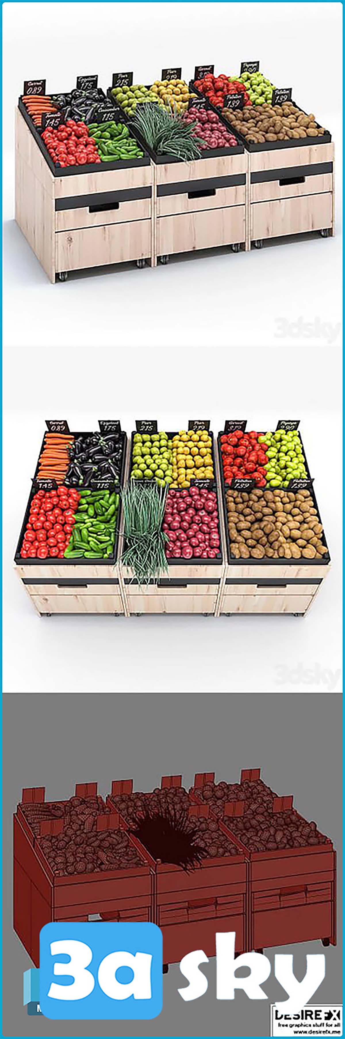 This 3D model showcases a breakdown of various vegetables in a visually appealing manner. The detailed design is perfect for those interested in 3D modeling and design. The file is available in 3DS Max and other compatible formats.