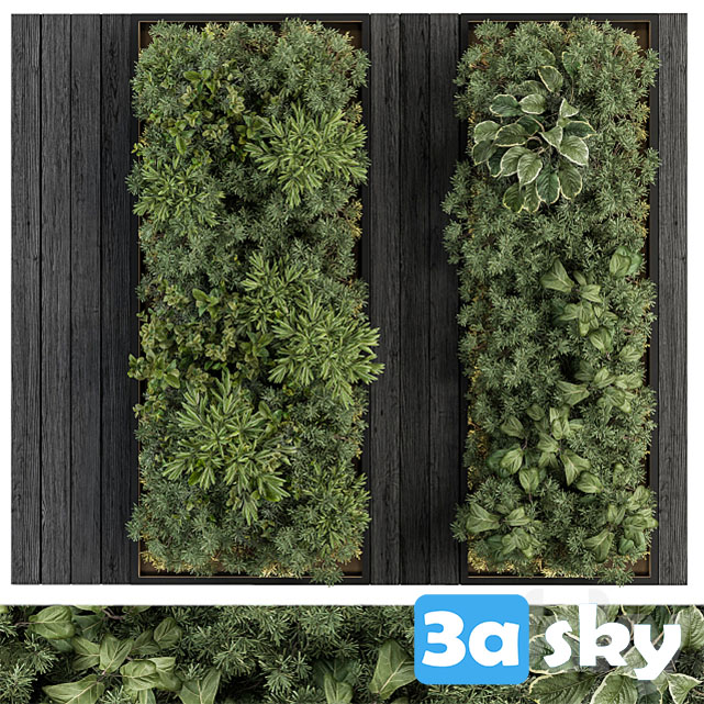 This 3D model showcases a vertical garden with a sleek black frame wall, ideal for adding a touch of nature to interior spaces. The design is perfect for those looking to incorporate greenery into their projects, whether it's for interior design or landscaping purposes. The intricate details and realistic textures make this model a standout choice for architects, designers, and anyone interested in creating visually appealing environments.