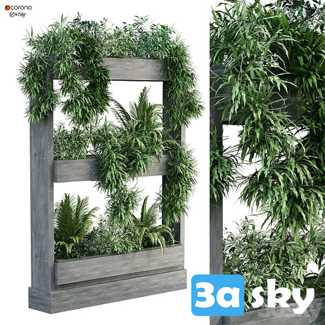 This 3D model features a vertical plant set with a preview of 191 variations. It is designed in 3DS MAX format and is suitable for use in architectural visualization, interior design, and landscaping projects. Download this high-quality file to enhance your design workflow.