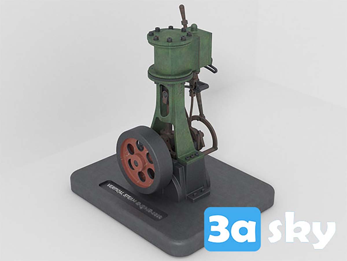 This 3D model showcases a detailed representation of a vertical steam engine. It is ideal for those interested in mechanical engineering and historical machinery. The intricate design and functionality of the steam engine make it a valuable addition to any collection or project.
