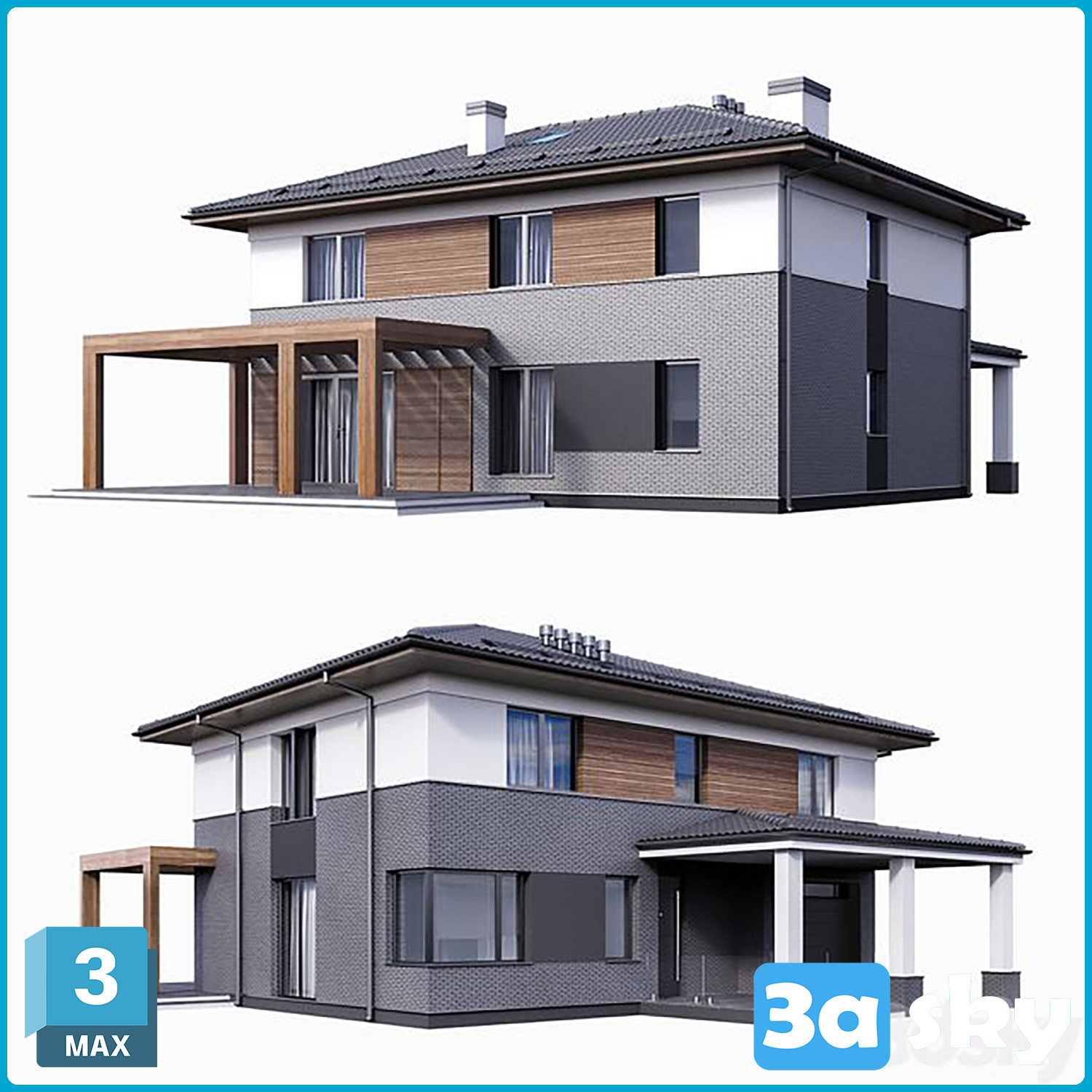 This image showcases a preview of Villa 003 in 3DS MAX/ARCHITECTURE format. The architectural design is visually appealing and detailed, providing inspiration for design enthusiasts and professionals alike.