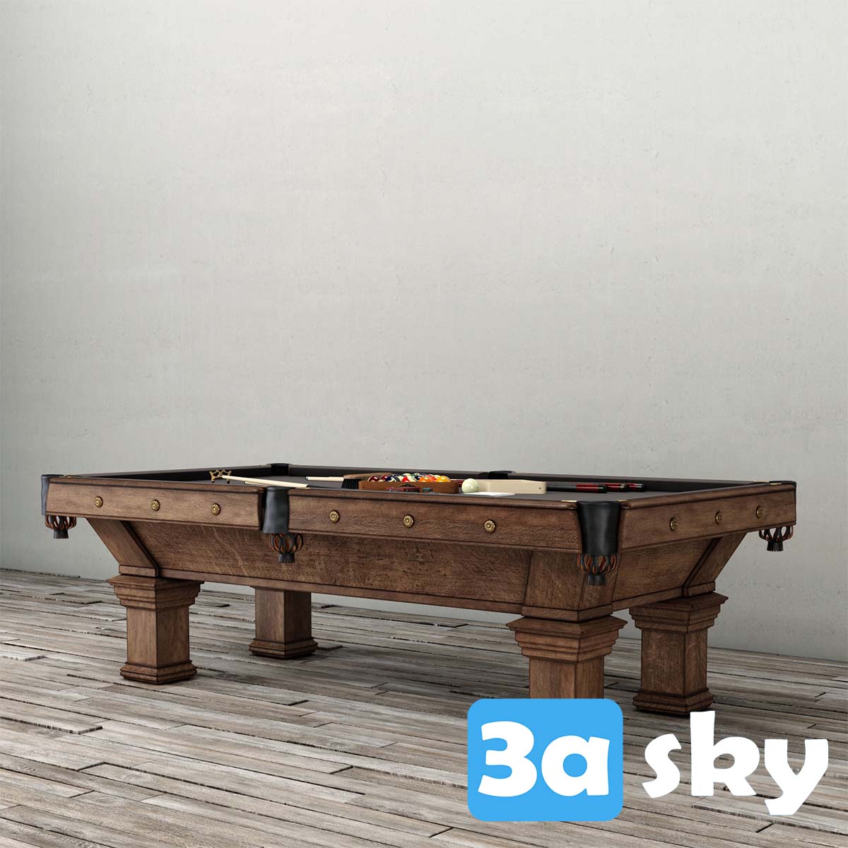 This 3D model showcases a vintage billiards table, ideal for interior decoration projects. The intricate details and design elements make it a perfect addition to any virtual interior design project. Created using 3DS MAX software, this model offers a realistic representation of a classic billiards table, suitable for various design and visualization purposes.