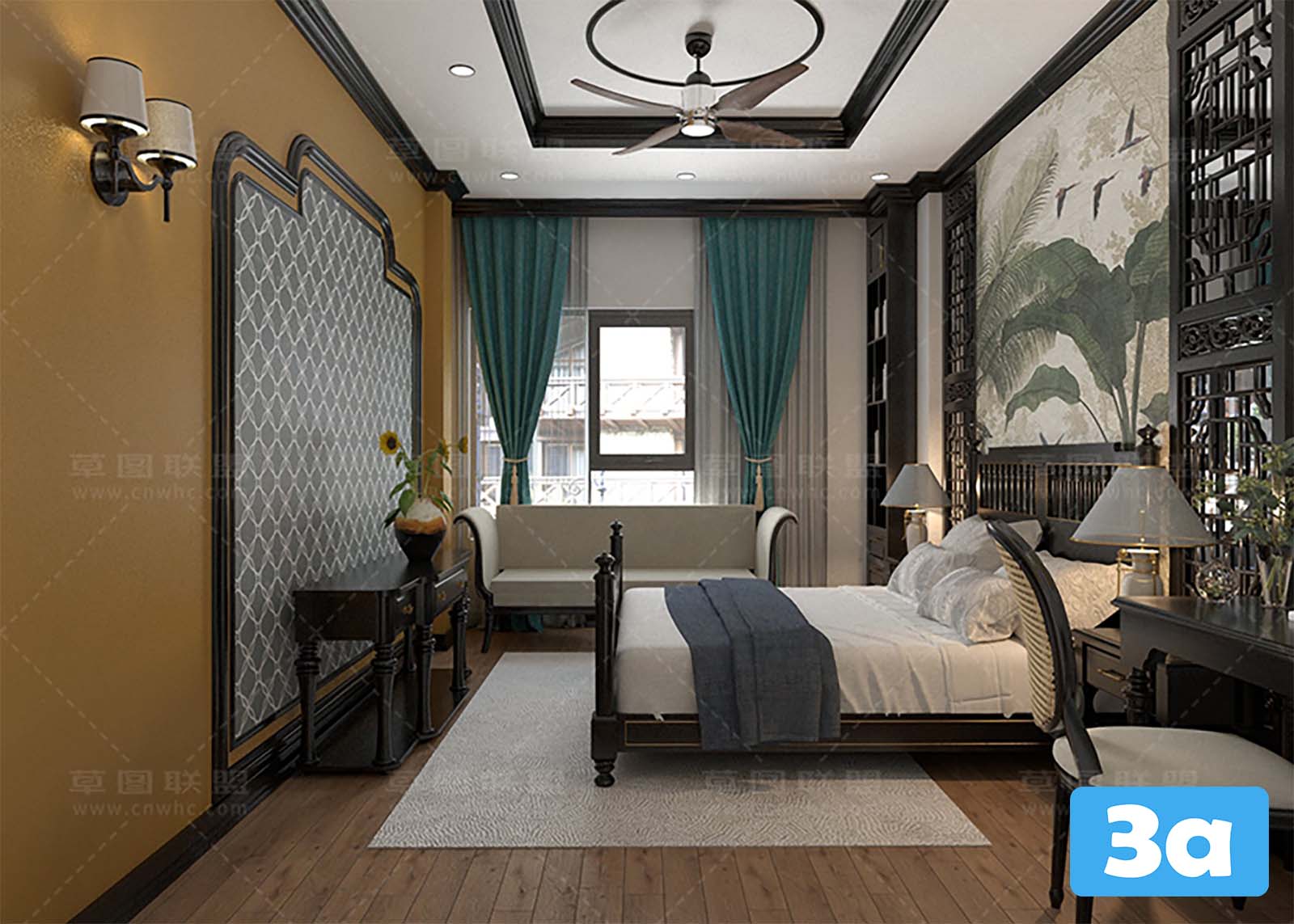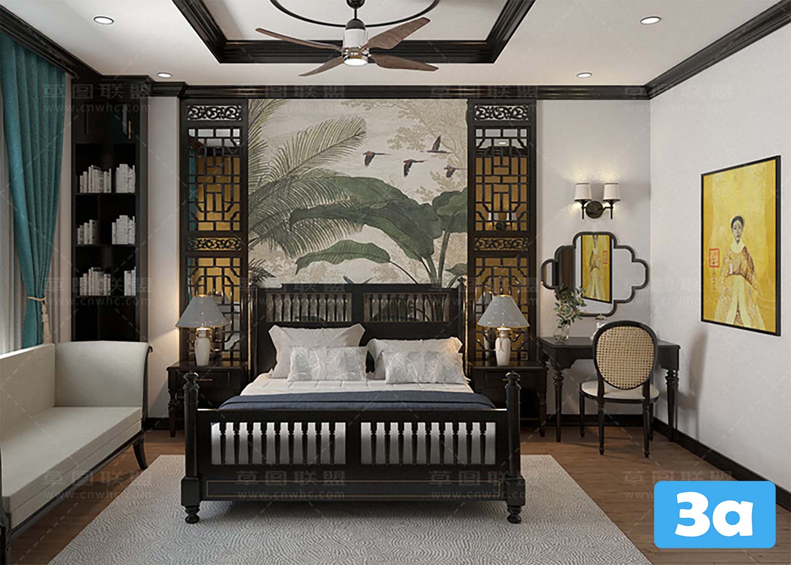 This 3D scene showcases a virtual reality bedroom with modern interior design elements. Experience the immersive VR environment and explore the details of the room. The scene is designed to provide a realistic and engaging virtual experience for viewers.
