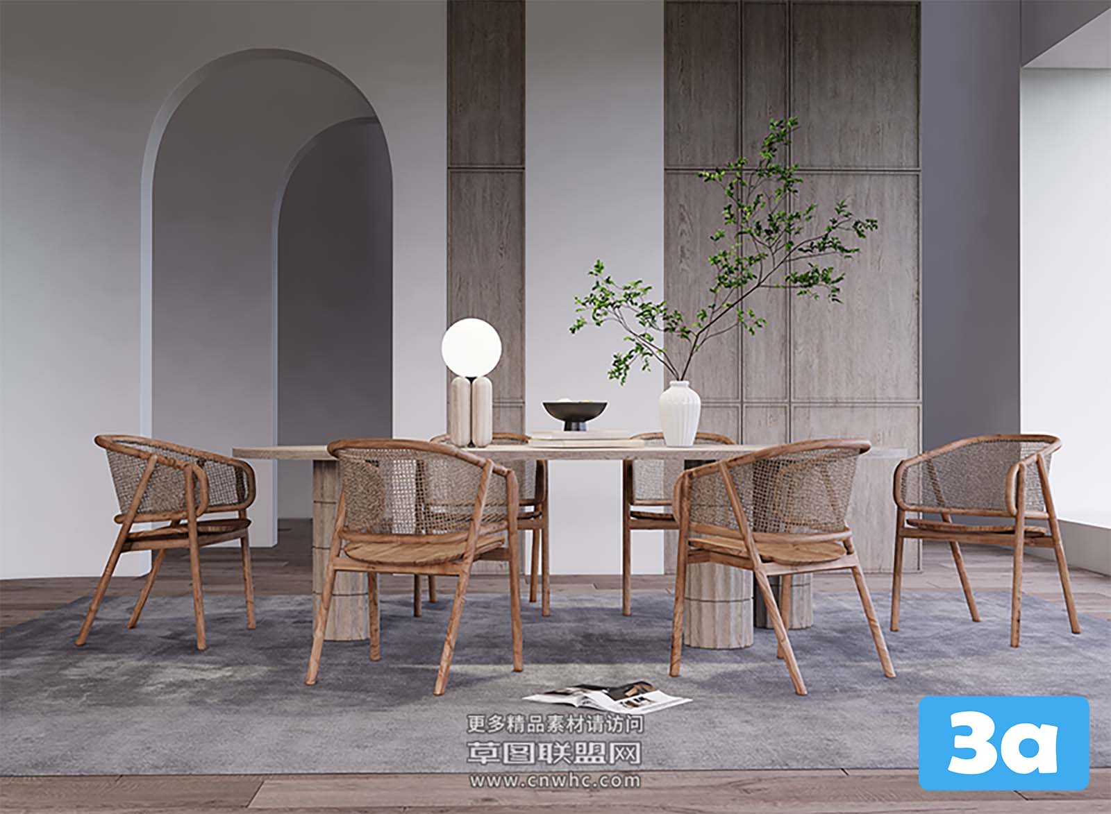 This 3D scene showcases a virtual reality dining room with modern furniture and interior design elements. Step into this immersive setting and experience a realistic view of a contemporary dining room. Perfect for interior design enthusiasts and virtual reality enthusiasts alike.