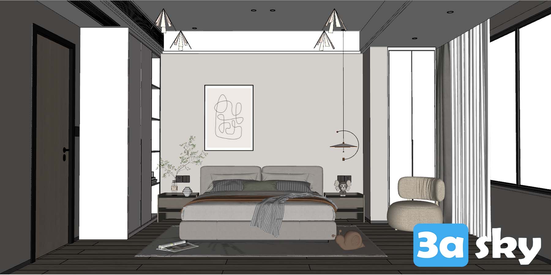 This 3D scene showcases a Wabi-Sabi inspired bedroom design, characterized by its minimalistic approach and emphasis on natural elements. The room exudes tranquility and simplicity, embracing imperfections as part of its beauty. The use of earthy tones and organic textures creates a serene atmosphere, inviting relaxation and contemplation. Experience the essence of Wabi-Sabi philosophy in this beautifully crafted interior space.