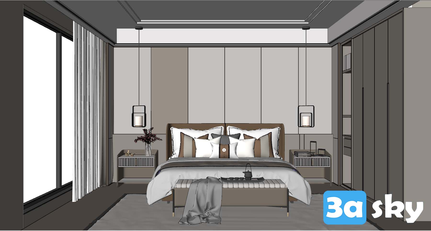 Wabi-Sabi Bedroom 3D Scene