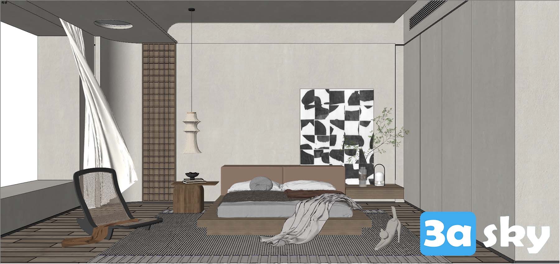 This 3D scene showcases a Wabi-Sabi inspired bedroom design, characterized by its simplicity, natural elements, and emphasis on imperfection and impermanence. The space exudes a sense of tranquility and minimalism, inviting you to appreciate the beauty in simplicity and the passage of time. Explore the harmonious blend of textures, earthy tones, and thoughtful details that create a serene and inviting atmosphere in this Wabi-Sabi bedroom setting.