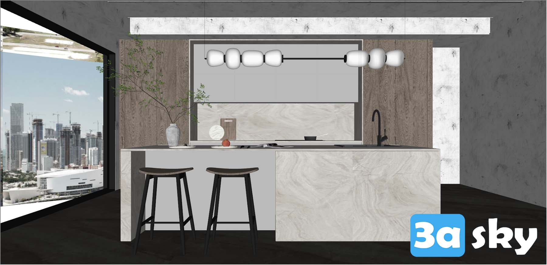 This 3D scene features a Wabi-Sabi dining room, inspired by the Japanese aesthetic of finding beauty in imperfection and simplicity. The design exudes a sense of tranquility and harmony, with natural elements and a minimalist approach. Experience the essence of Wabi-Sabi in this captivating interior setting.