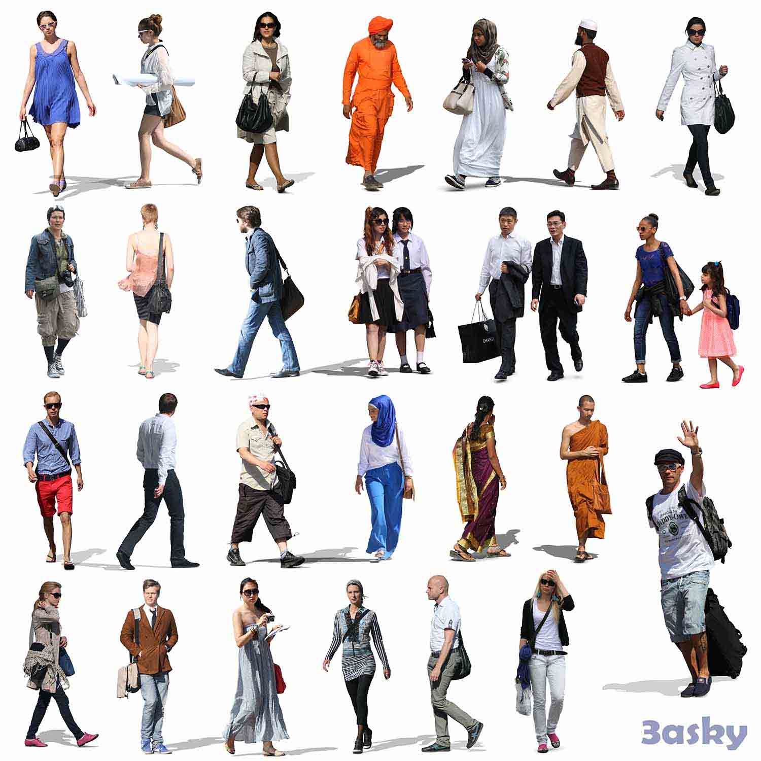 This 3D model features a group of people walking. It is a high-quality render suitable for architectural visualizations and other creative projects. The file is in Photoshop format and can be easily integrated into your design workflow.