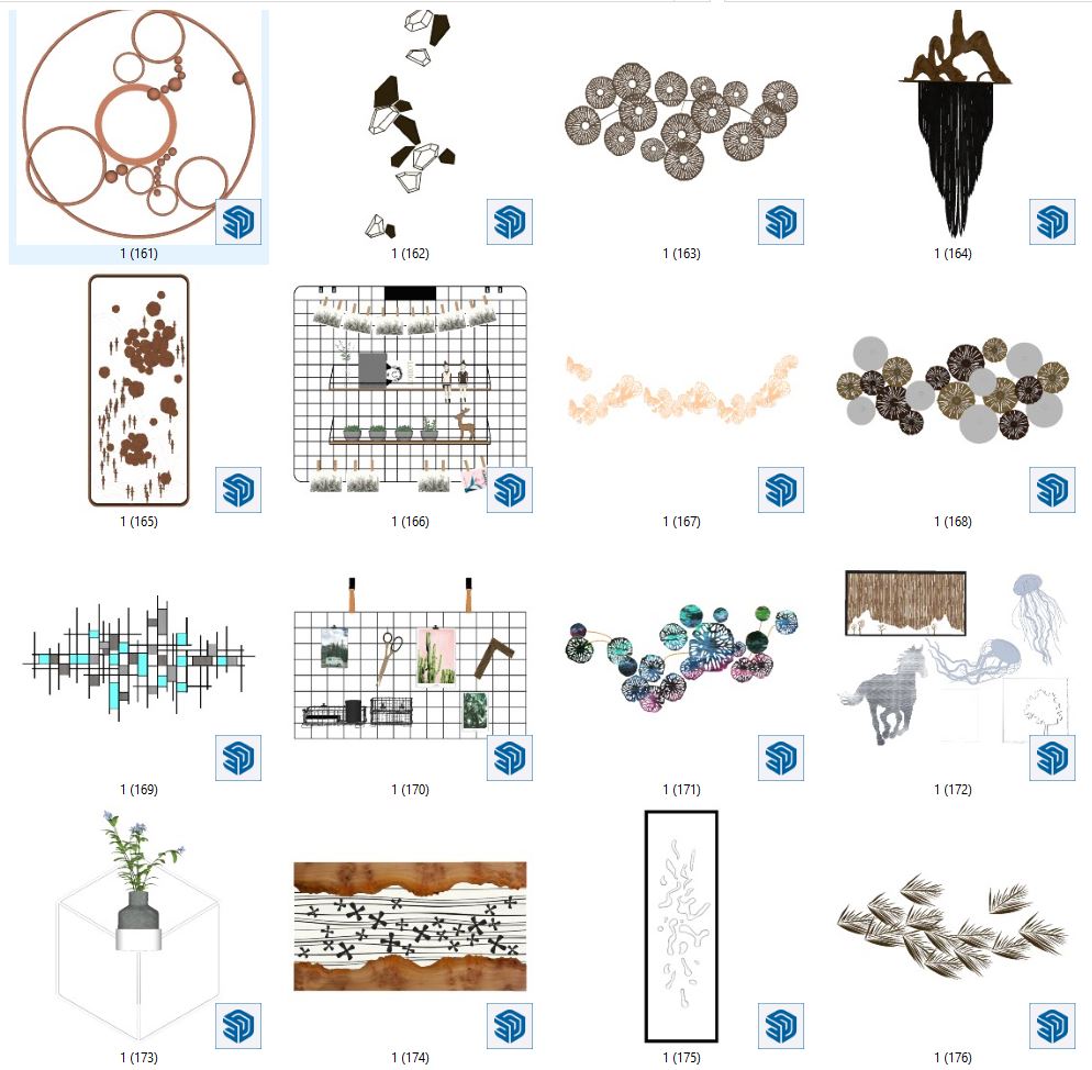 This Sketchup file features a wall hanging decoration model that can be used in interior design projects. The detailed design adds a touch of elegance to any space. Download this model to enhance your design visualization.