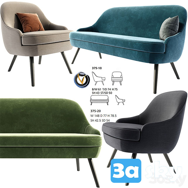 V_Walter Knoll Armchair And Sofa With Pillow.zip