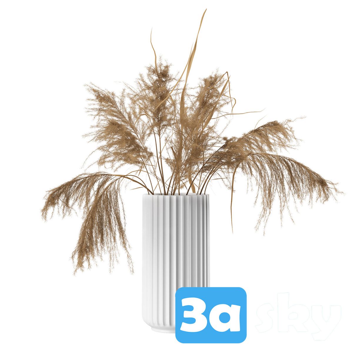 This 3D model features a White Lyngby Vase measuring 25 cm with a beautifully arranged dried plant. It is a high-quality representation suitable for interior design projects and visualization purposes.