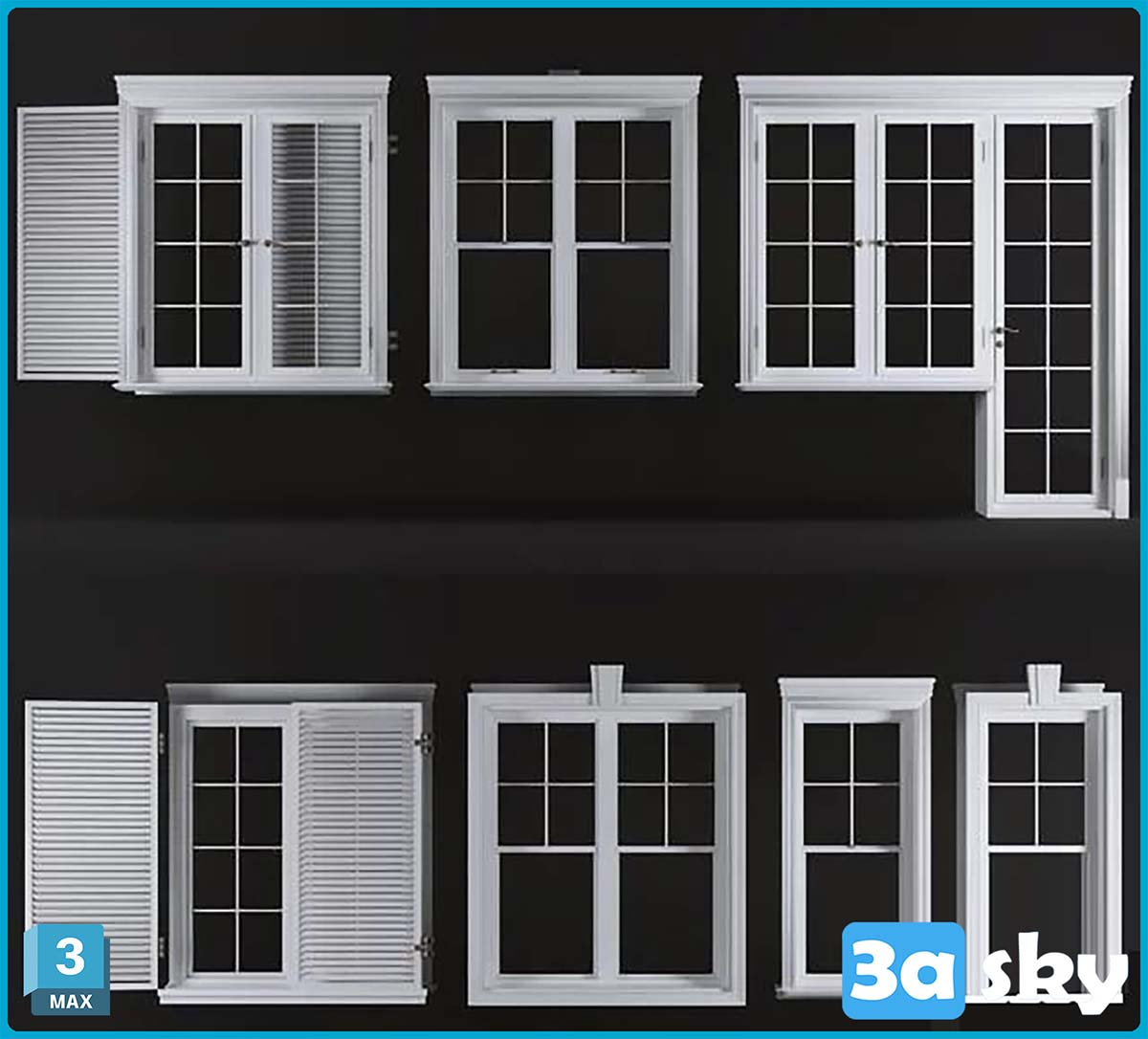 This image features a preview of a set of windows designed for architectural visualization. It is created in 3DS MAX software and is suitable for architectural projects and interior design. The windows in the set offer a modern and sleek design, perfect for adding realism to your 3D architectural models.