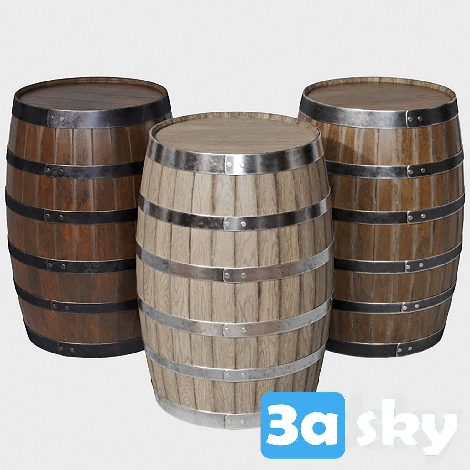 This high-quality 3D model features detailed wooden barrels suitable for various interior design projects. Add a touch of rustic charm to your scenes with these realistic barrels. Compatible with 3DS MAX/FURNITURE software. Download now and enhance your design library.