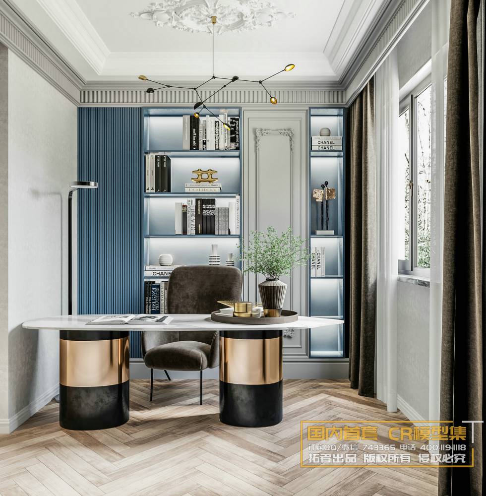 This 3D scene showcases a modern work room setup, ideal for office or workspace interior design projects. The scene includes carefully designed furniture and decor elements, created using 3DS MAX software. Explore the intricate details and layout of this work room for inspiration and creative ideas for your own projects.