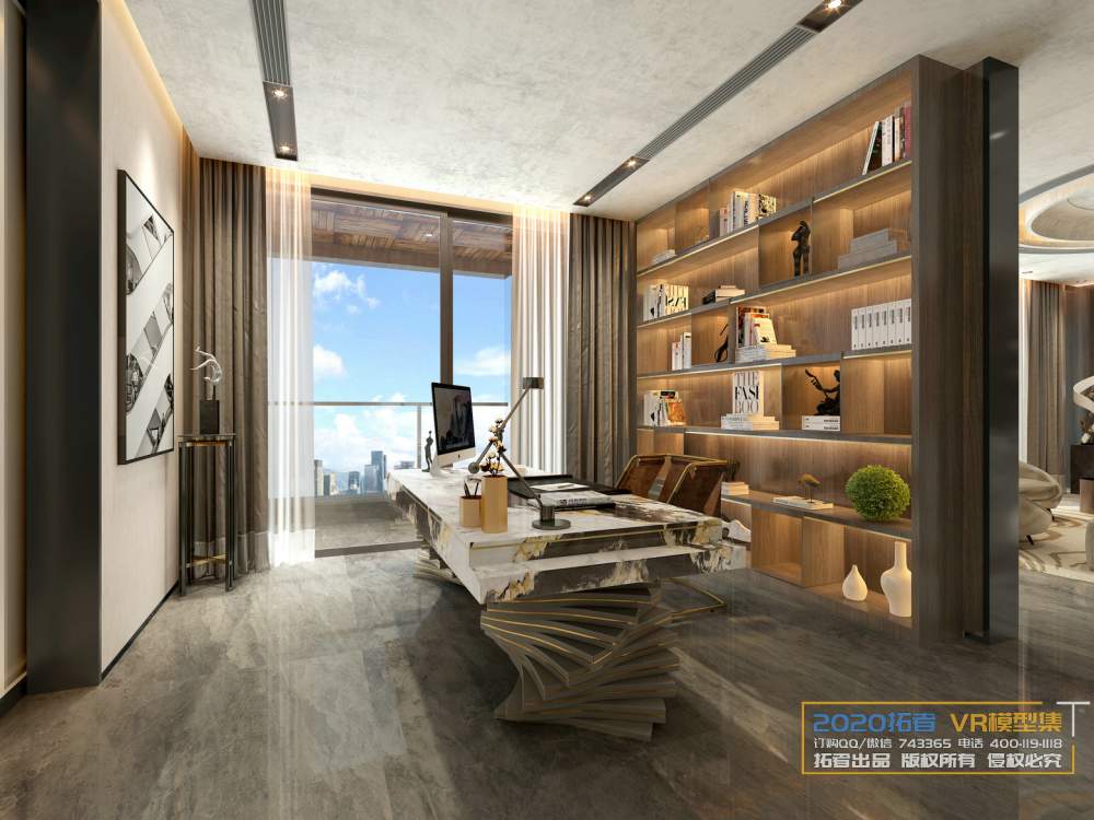 This 3D scene showcases a modern work room setup, ideal for office or workspace designs. Created using 3DS MAX software, the scene features detailed furniture and decor elements, providing inspiration for interior design projects.